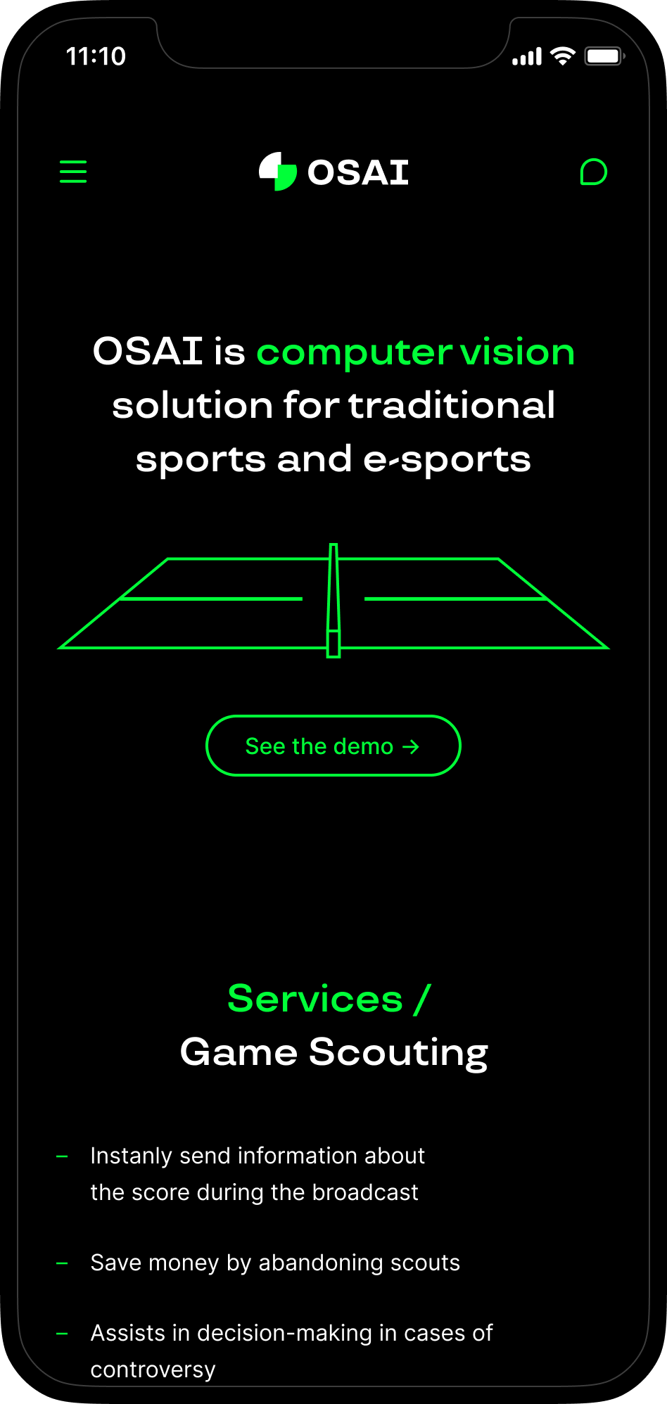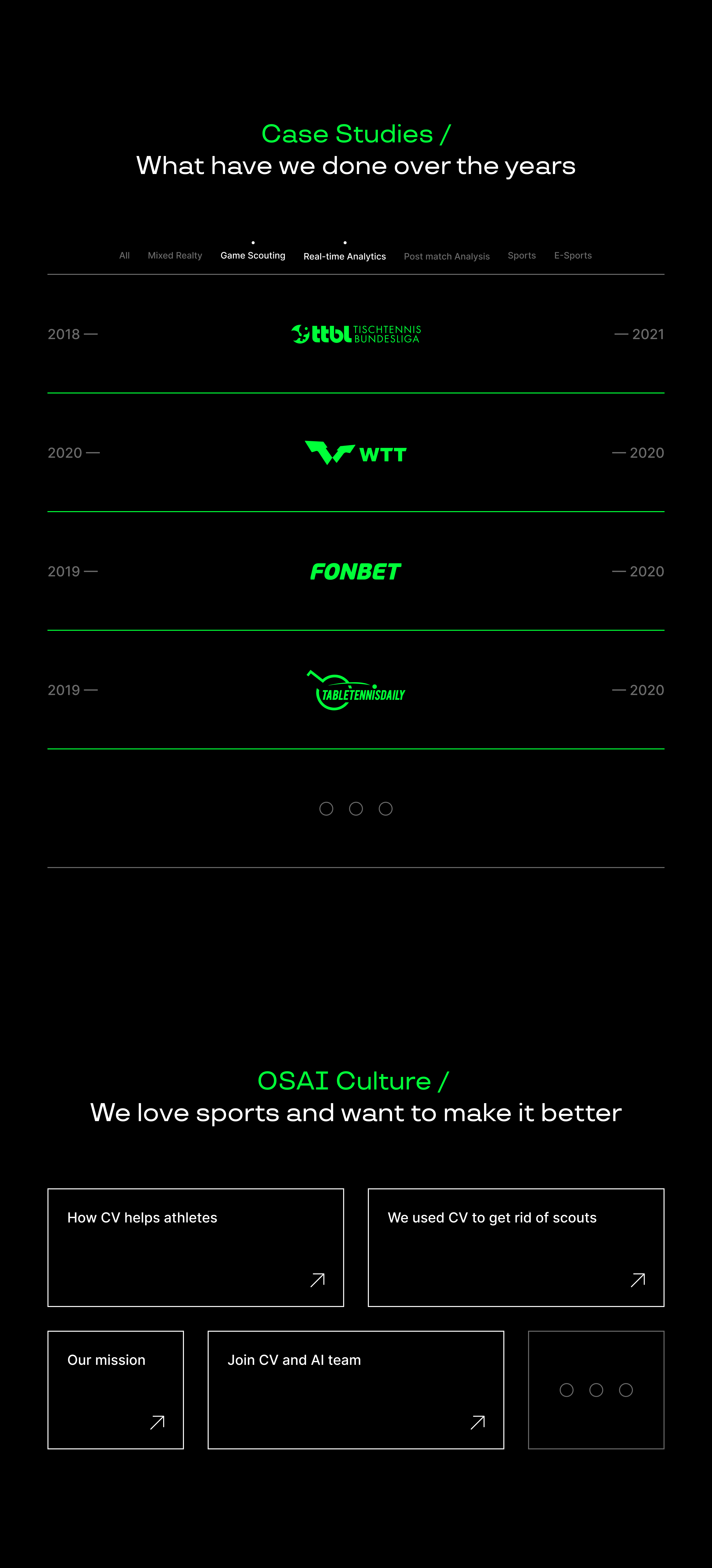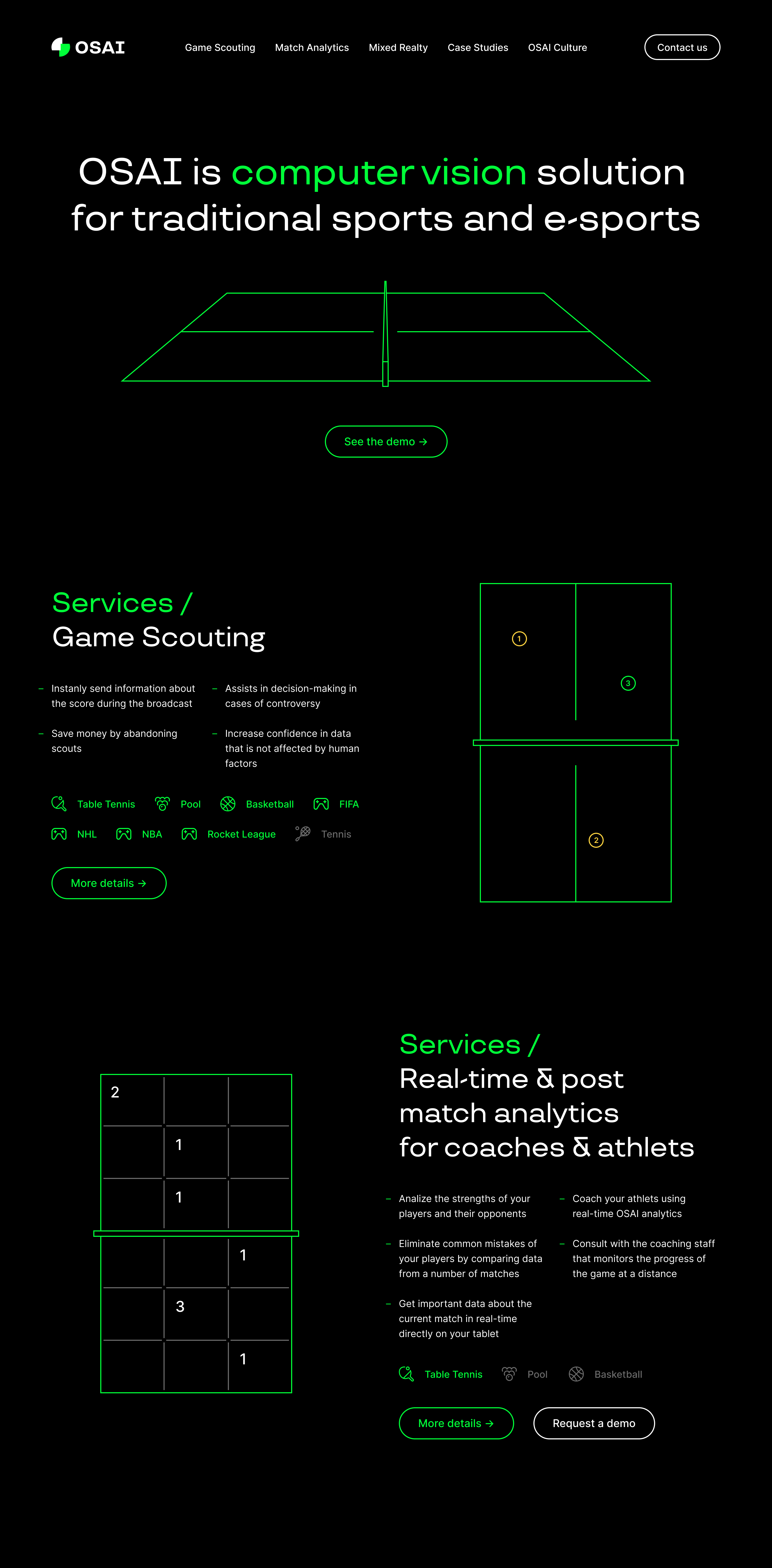 Сайт компании-разработчика автоматизированных продуктов для спортивной аналитики